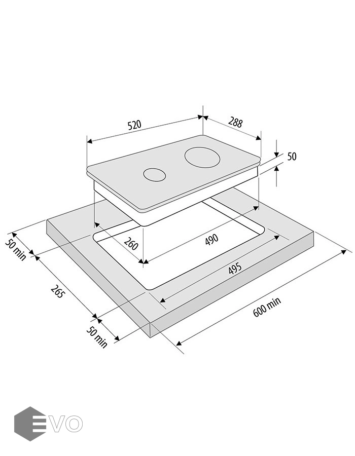 - Встраиваемая часть (ВхШхГ), мм: 50х260х490