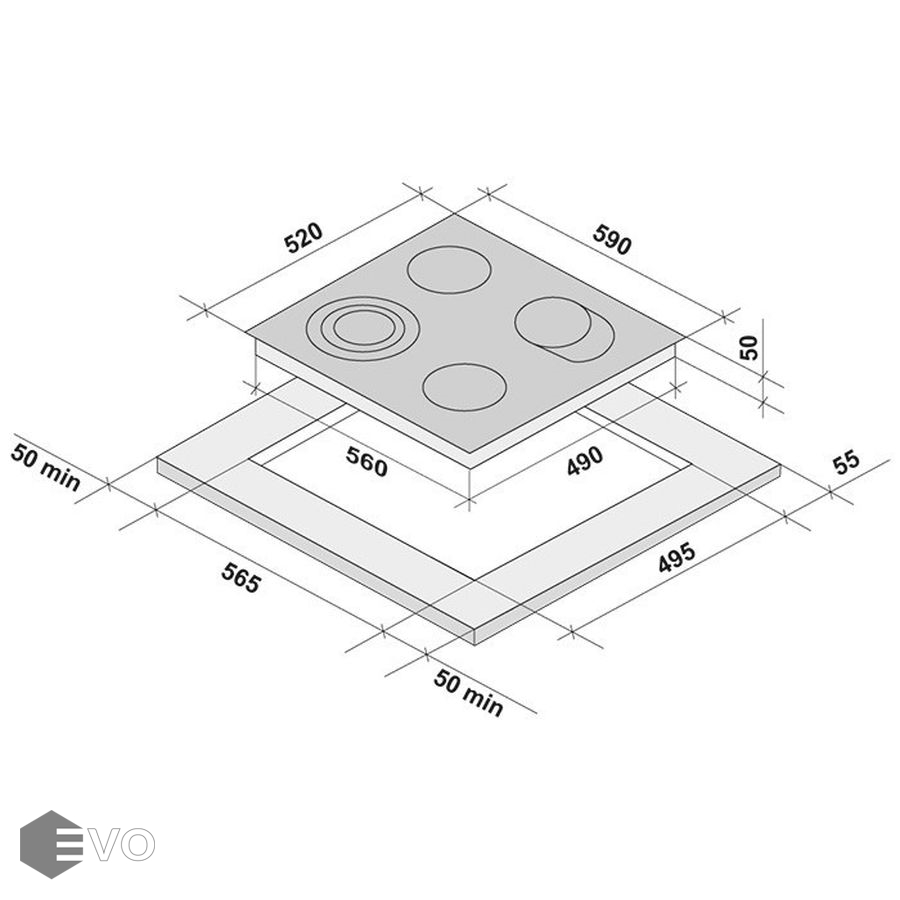 Размеры встраивания (ВхШхГ), мм: | 30х565х495 |