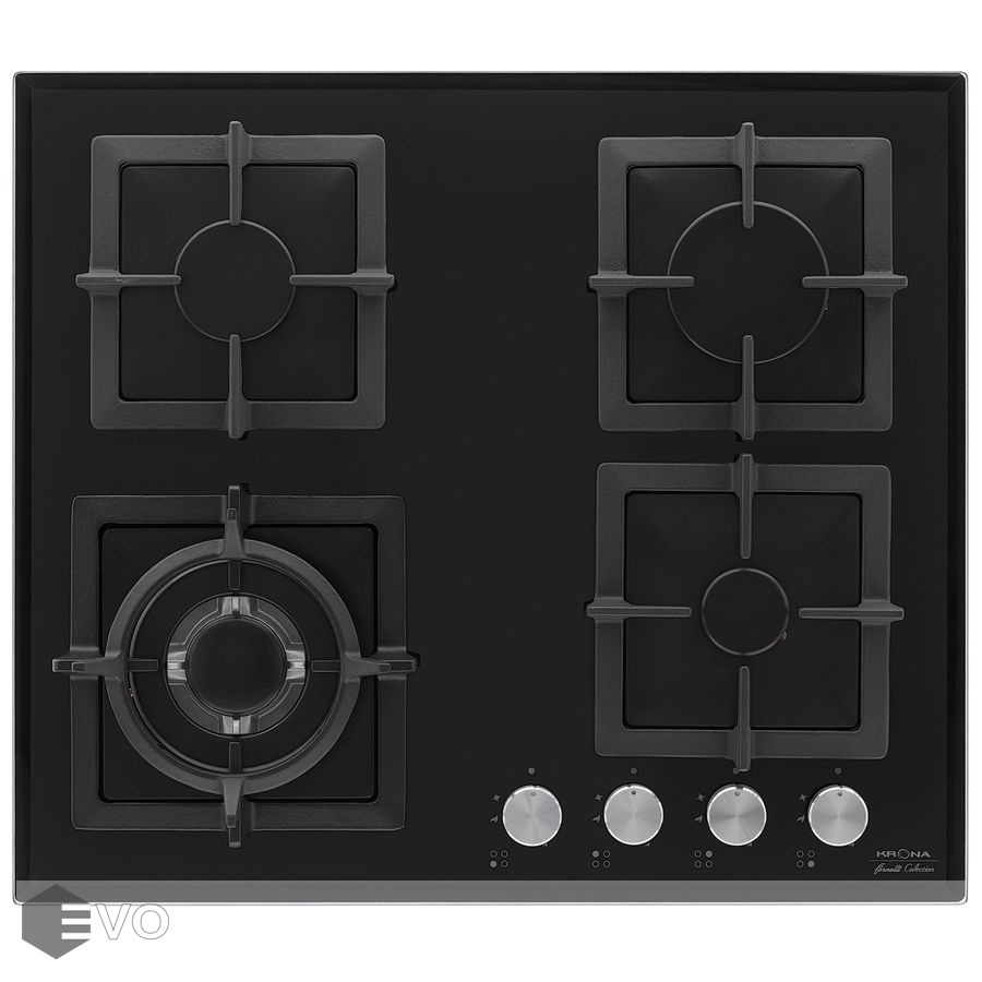 Модель CALORE на 60 см представлена в трех популярных цветах: черный, белый и нержавеющая сталь. Варочная поверхность выполнена из толстого закаленного стекла толщиной 8 мм, что гарантирует безопасность эксплуатации. Также в модели предусмотрена функция газ-контроля, которая остановит подачу газа в случае если пламя погаснет.