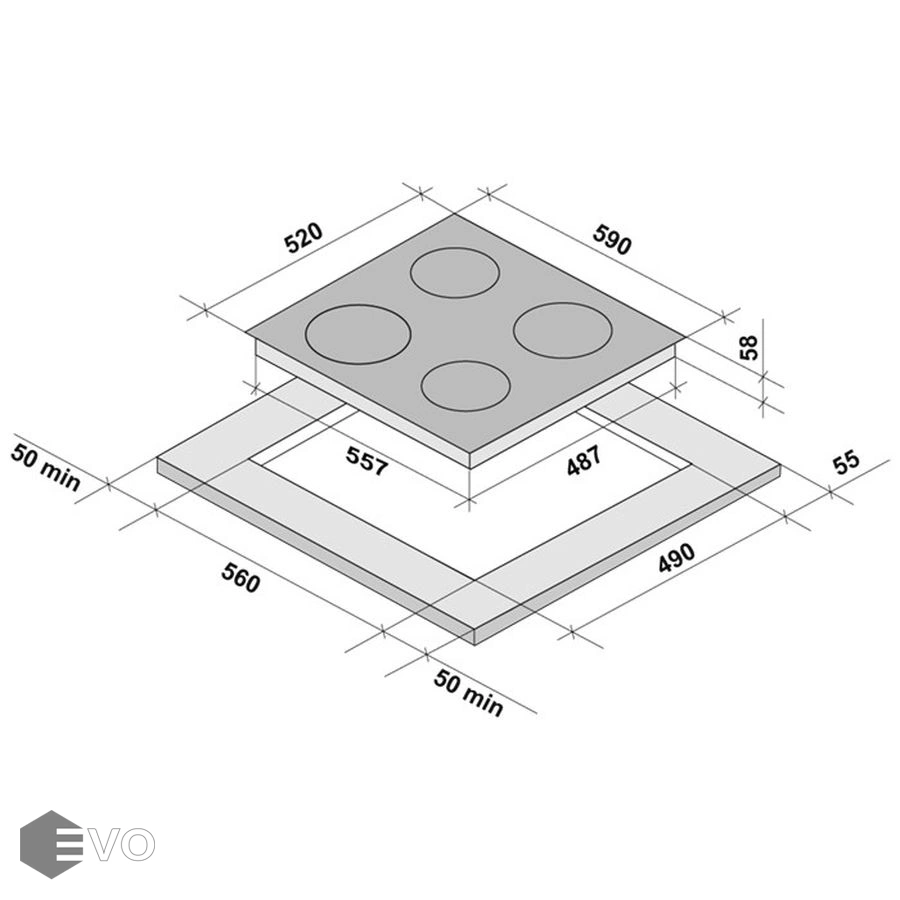 | Размеры встраивания (ВхШхГ), мм: | 35х560х490 |