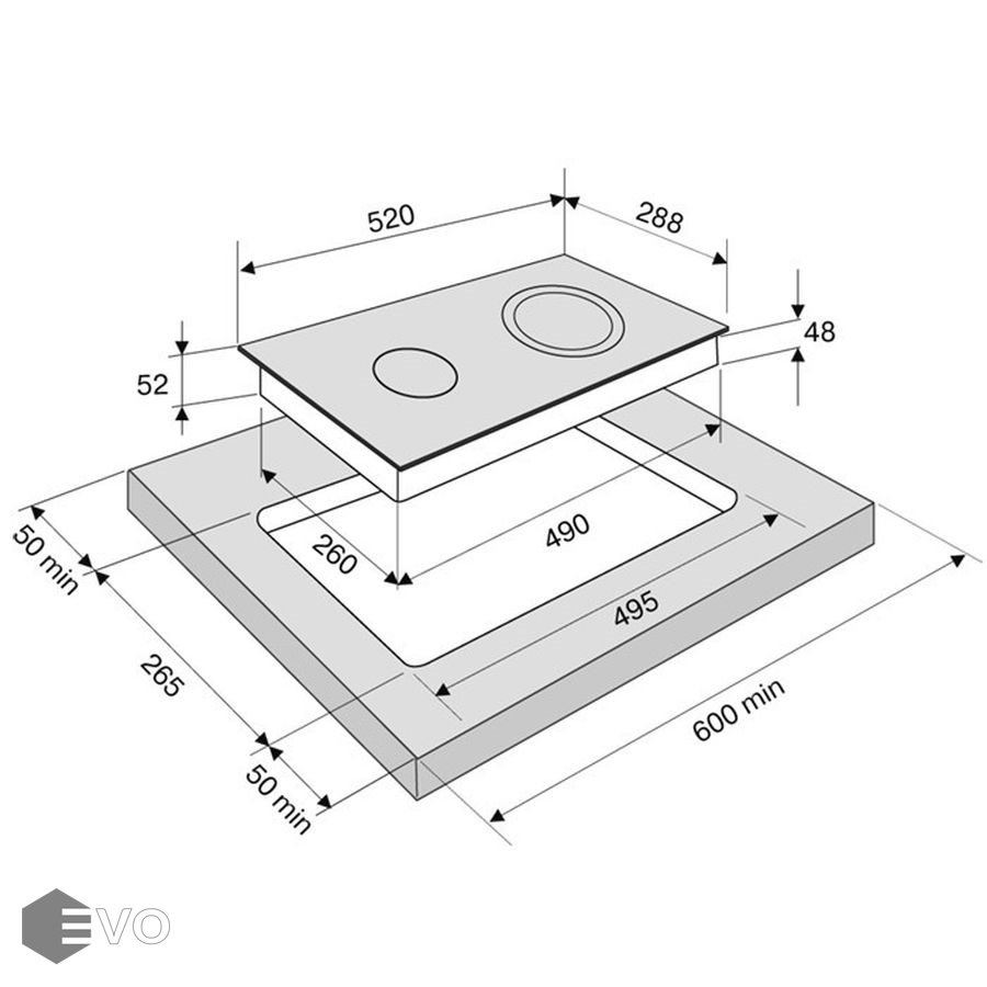 Размеры встраивания (ВхШхГ), мм: | 35х265х495 |