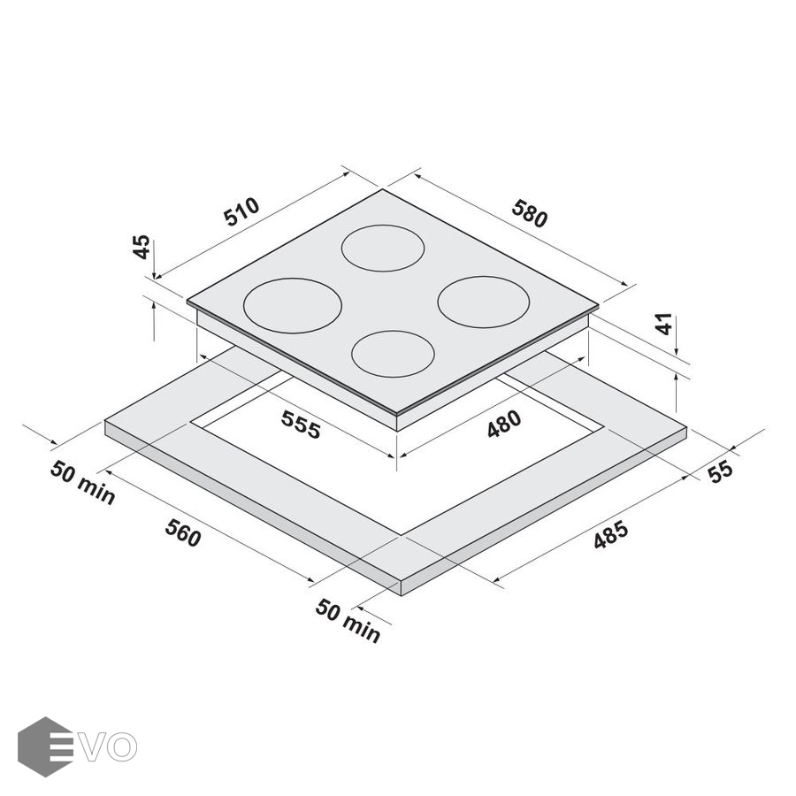Размеры встраивания (ВхШхГ), мм: | 35х560х485 |
