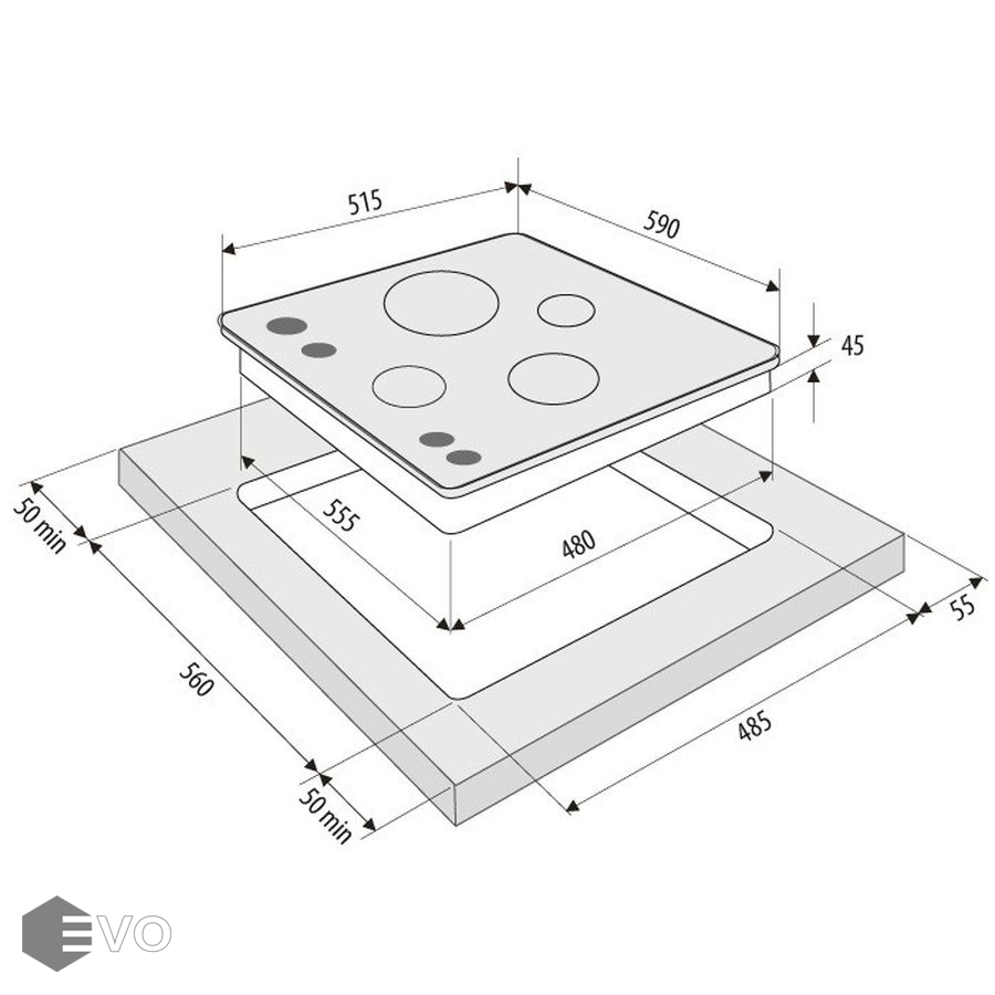 Размеры встраивания (ВхШхГ), мм: | 30х560х485 |