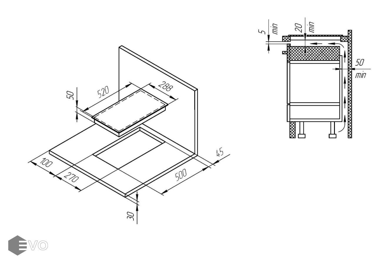 - Размер ниши для встраивания (ШхГ), мм: 270×500