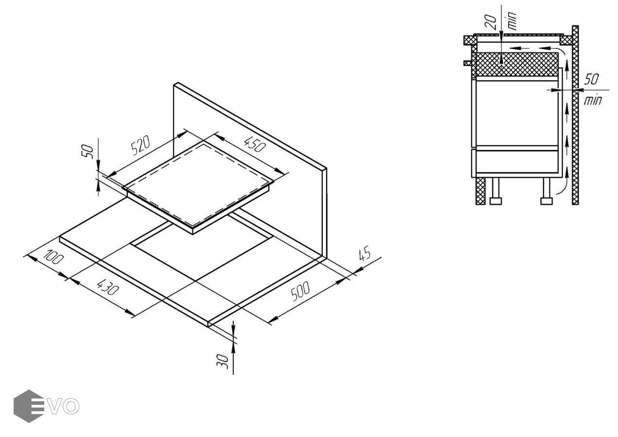 - Размер ниши для встраивания (ШхГ), мм: 430×500