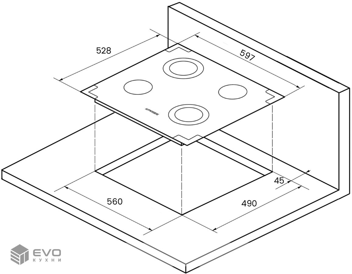 • Размер ниши для встраивания (ШхГ), мм: 560×490