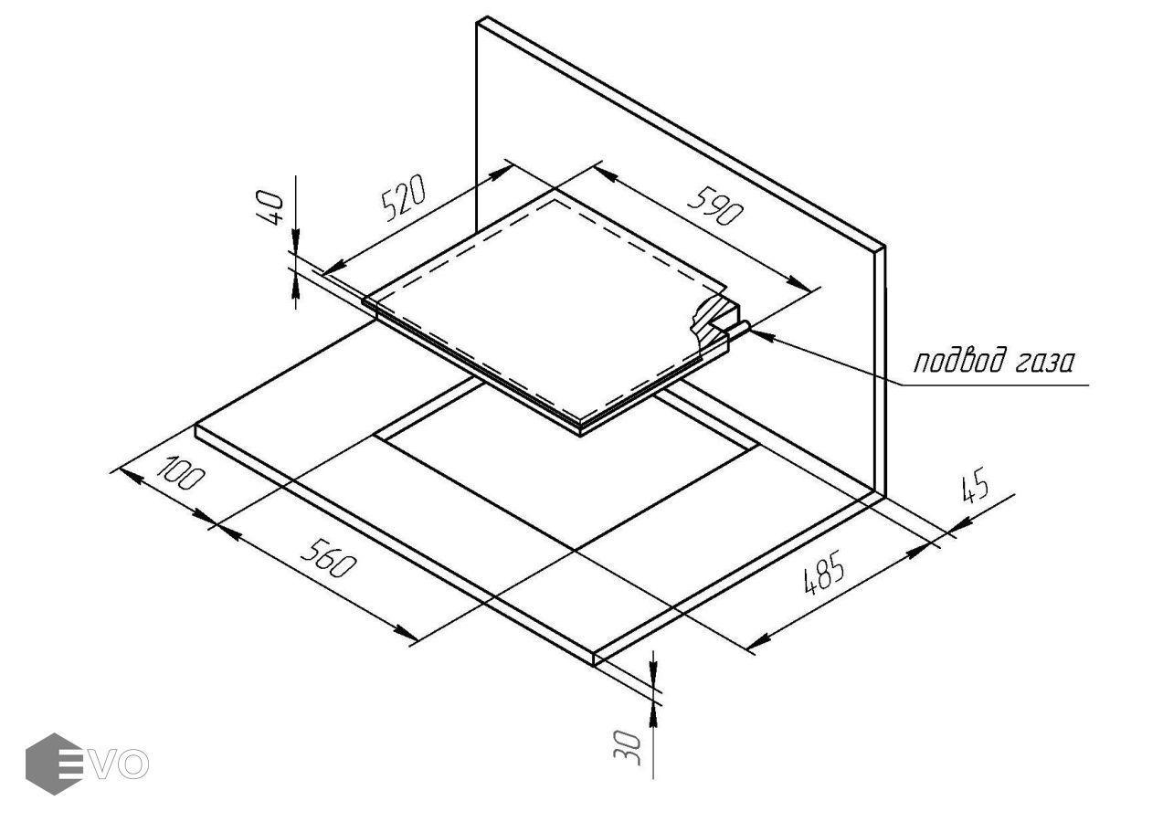 • Размеры ниши для встраивания (ШхГ): 560×485