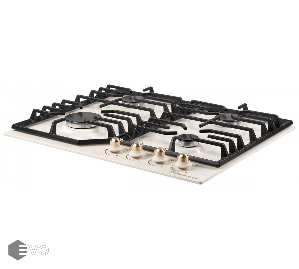 Газовая варочная поверхность металл, ширина 60 см, 4 газовые конфорки, автоподжиг, газ-контроль, чугунные решетки, цвет бежевый/ручки цвета бронзы. Варочные поверхности покрытые эмалью имеют глубину цвета, а также приятные и гладкие на ощупь. Современные технологии эмали позволяют создать материал стойкий к нагреву и устойчивый к износу и по этим причинам эмалированные варочные поверхности, не только красивы, но и практичны в применении и уходе.