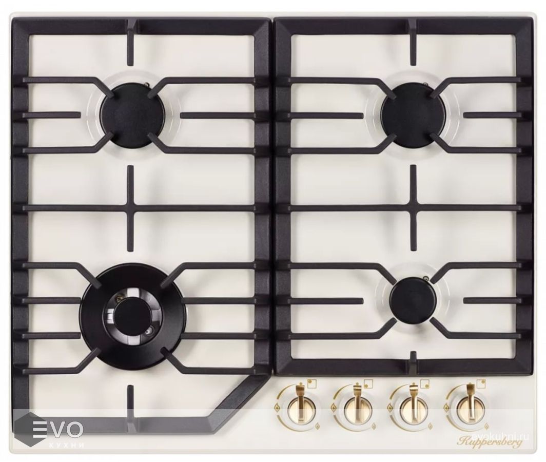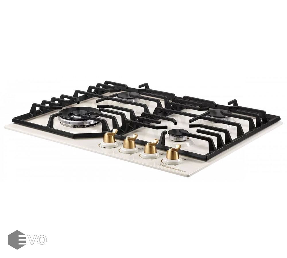 Газовая варочная поверхность металл, ширина 60 см, 4 газовые конфорки, передняя левая конфорка WOK 3,8 кВт, автоподжиг, газ-контроль, чугунные решетки, цвет бежевый/ручки цвета бронзы. Варочные поверхности покрытые эмалью имеют глубину цвета, а также приятные и гладкие на ощупь. Современные технологии эмали позволяют создать материал стойкий к нагреву и устойчивый к износу и по этим причинам эмалированные варочные поверхности, не только красивы, но и практичны в применении и уходе.