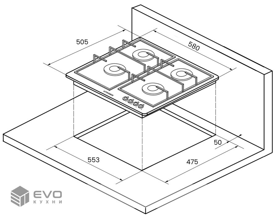 - Размеры ниши для встраивания (ШхГ): 555×475