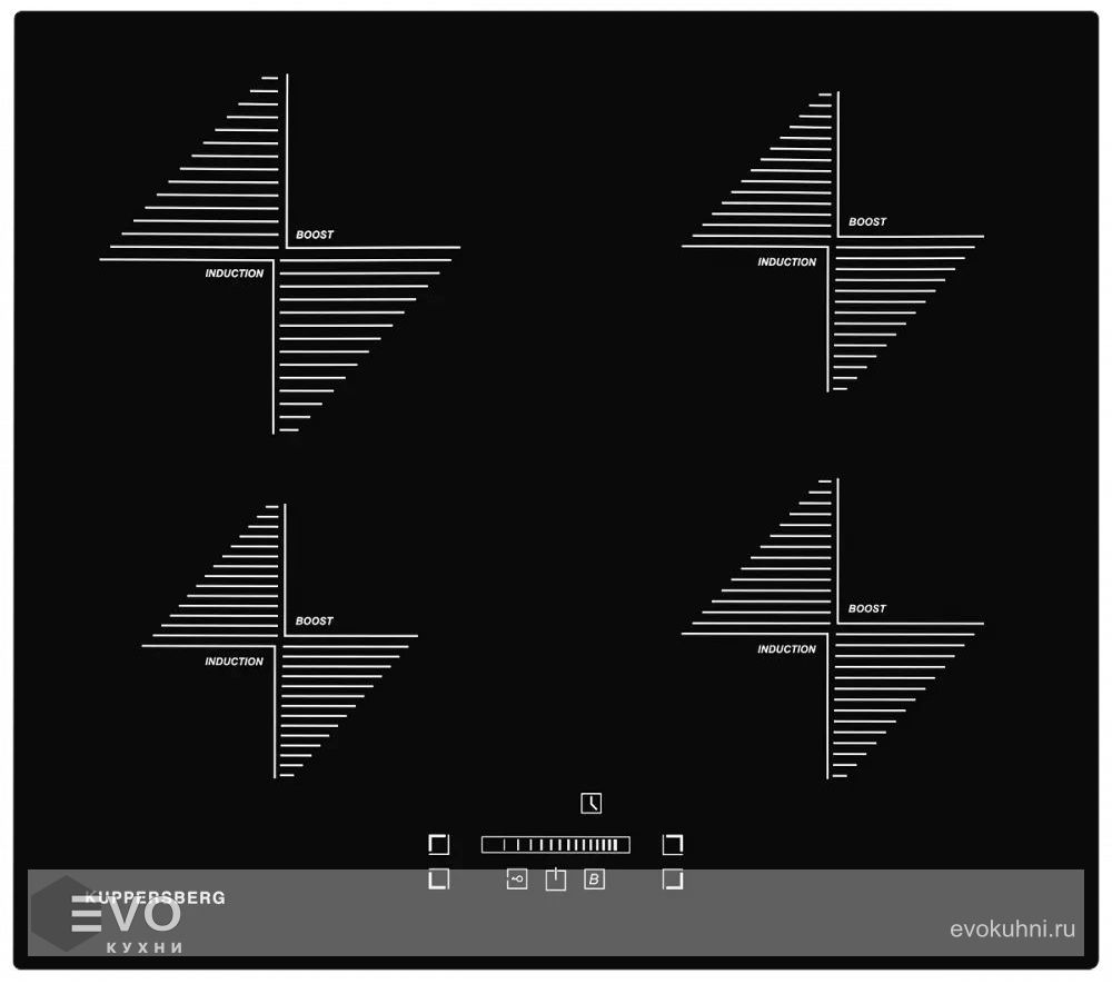 - СЛАЙДЕР. Удобное управления одним пальцем без повторных нажатий. Легко и просто передвигая палец вы настраиваете мощность нагрева конфорки. Экономит время и помогает в готовке.