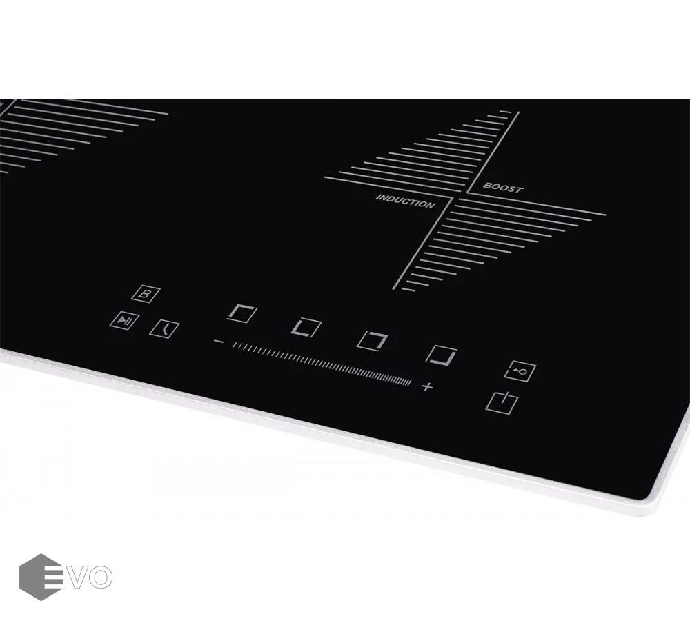 Индукционная варочная поверхность стеклокерамическая, ширина 60 см, 2 зоны 1,5 кВт(BOOSTER 2 кВт), 2 зоны 2 кВт(BOOSTER 3 кВт),электронное сенсорное управление + слайдер, 5 цифровых дисплеев, 9 уровней мощности, автоматическое отключение, автоматика закипания, защита от детей/блокировка панели управления, индикаторы остаточного тепла, Таймер, Stop & Go, цвет черный/прямой край, рамка из нержавеющей стали.