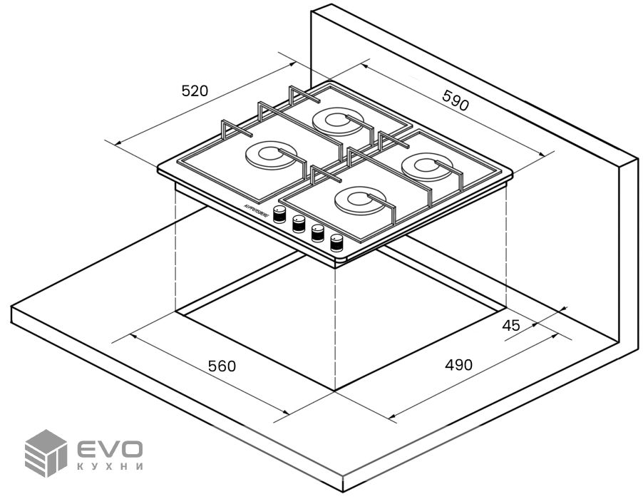 - Размеры ниши для встраивания (ШхГ): 565×495