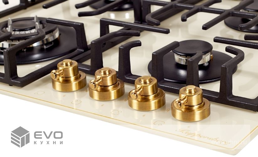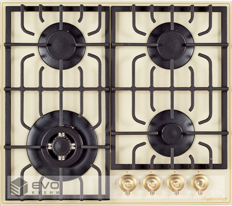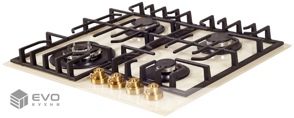 Газовая варочная поверхность, закаленное стекло, ширина 60 см, 4 газовые конфорки, WOK конфорка повышенной мощности 2,5 кВт, автоподжиг, газ-контроль, чугунные решетки, цвет бежевый/ручки цвета бронза. Варочная поверхность из закаленного стекла, имеет высокую прочность и срок службы, также гарантирует легкую очистку от грязи и продуктов кипения. Внешний вид закаленного стекла подчеркнет столешницу из любых материалов и идеально впишется в вашу кухню. Решетка изготовлена из чугуна с оригинальным дизайном и практичной формой. Фиксацию решетки на варочной панели обеспечивает ребро жесткости, за счет специальных креплений.