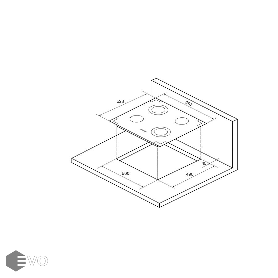 - Размер ниши для встраивания (ШхГ), мм: 560х490