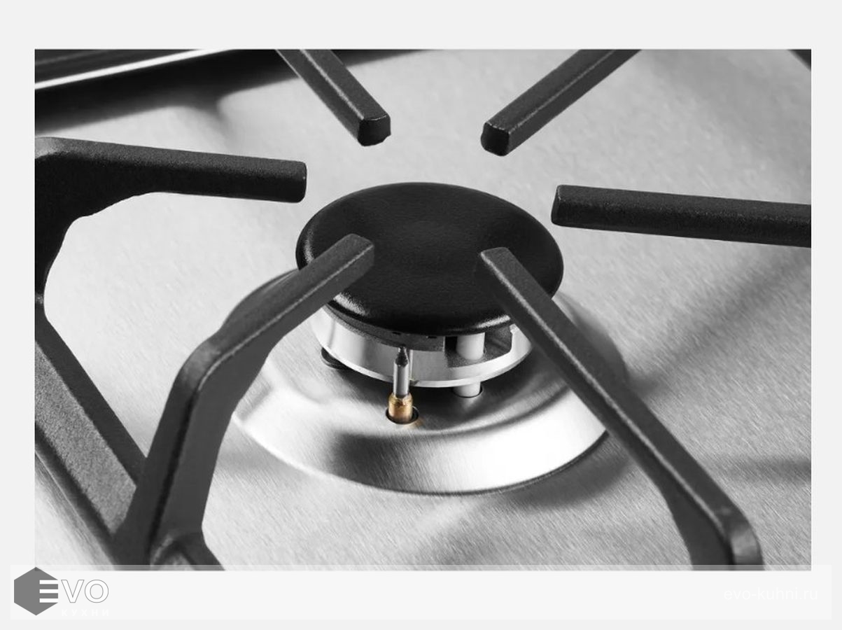Решетка изготовлена из прочного чугуна оригинального дизайна и практичной формы. Фиксация решетки на варочной панели обеспечивается специальным ребром жесткости при помощи специальных креплений.
