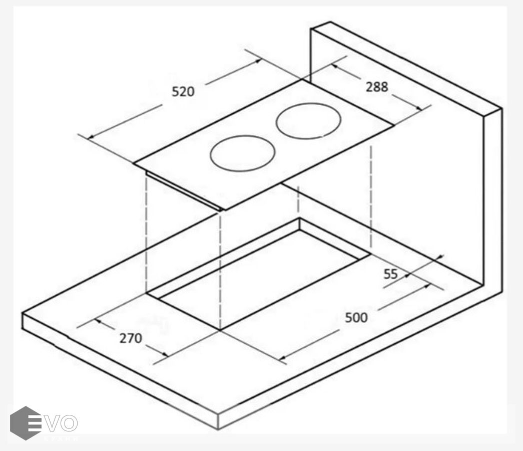 - Размер ниши для встраивания (ШхГ), мм: 270х500