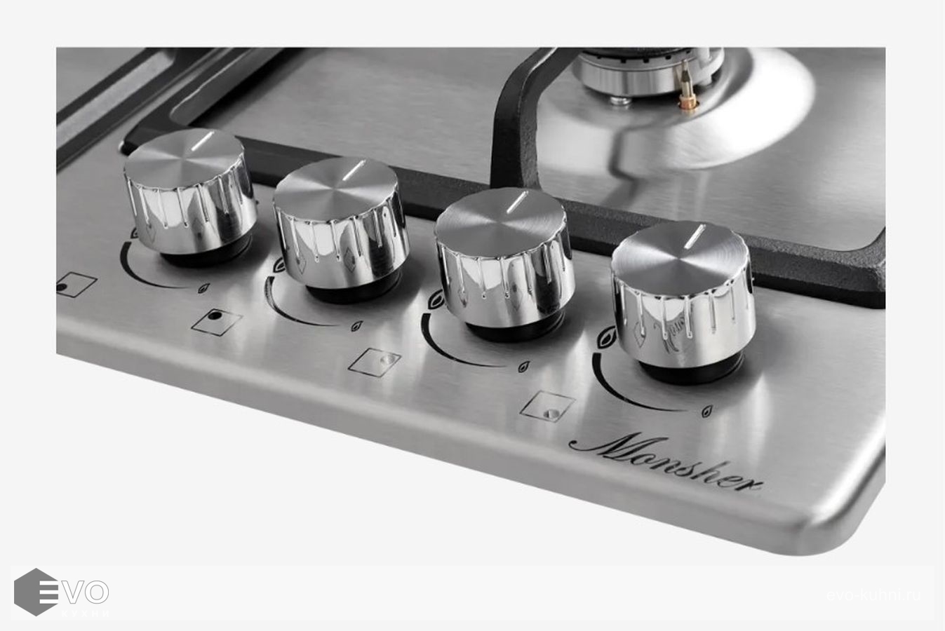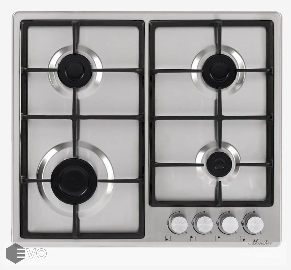 - 4 конфорки разного диаметра, мощность одной из которых 2,5 кВт;