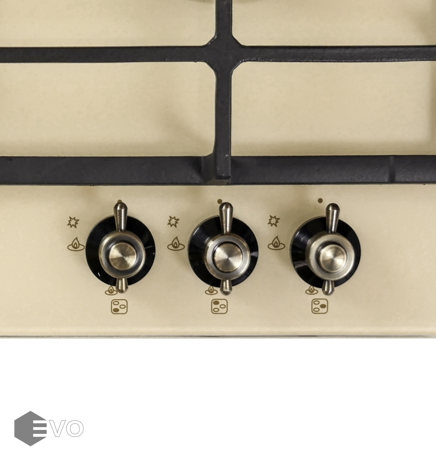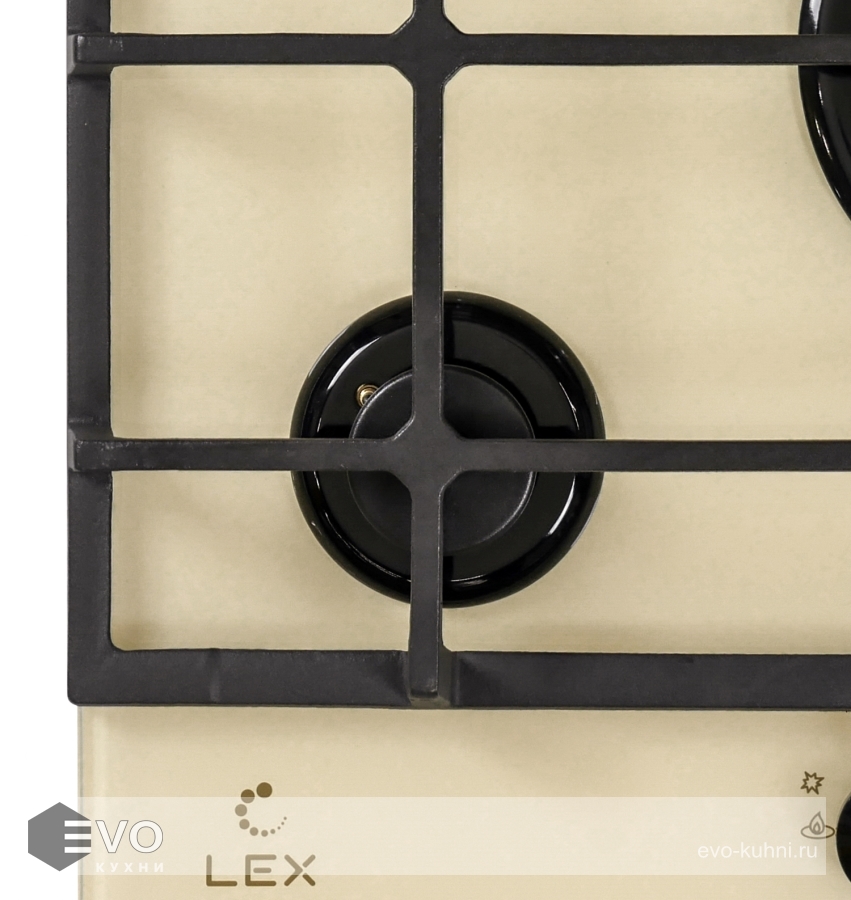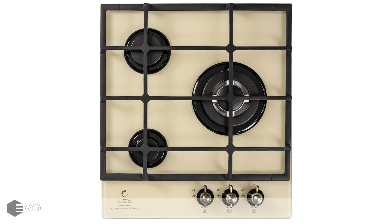 Газовая варочная панель LEX GVG 431 C IV – газовая варочная поверхность из закаленного стекла с поворотными переключателями декорированные под античную бронзу предназначена для домашнего применения (приготовление и нагрев блюд). Установка возможна на различные жаростойкие материалы. Имеет три конфорки с функцией автоматического электроподжига: 1 маленькая, 1 средняя, 1 WOK.