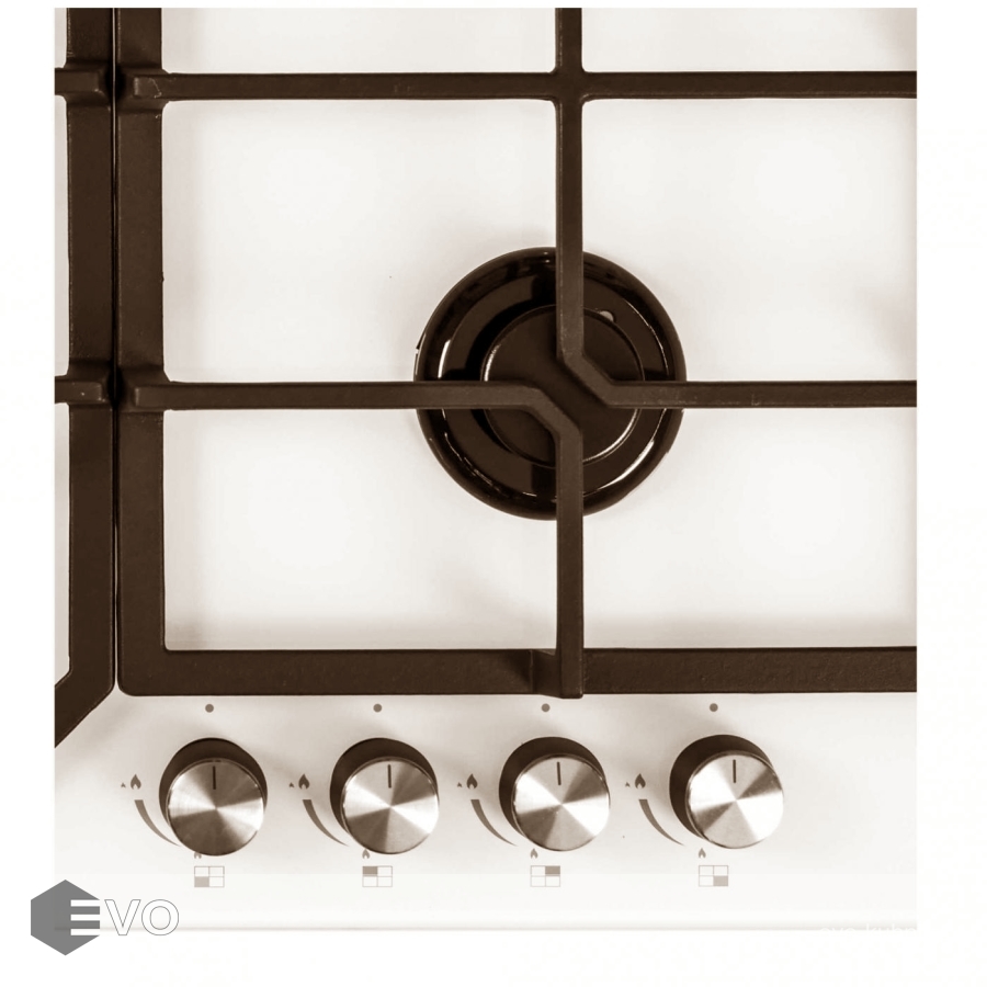 Газовая варочная панель LEX GVG 6042 IV LIGHT (белый антик) – газовая варочная поверхность из закаленного стекла предназначена для домашнего применения (приготовление и нагрев блюд). Установка возможна на различные жаростойкие материалы. Имеет четыре конфорки с функцией автоматического электроподжига: 1 маленькая, 2 средние, 1 большая. Управление осуществляется при помощи поворотных регуляторов. Работает, также и от магистрального газа и газа в баллоне (тип G30), для этого достаточно поставить специальные жиклеры, которые есть в комплекте.