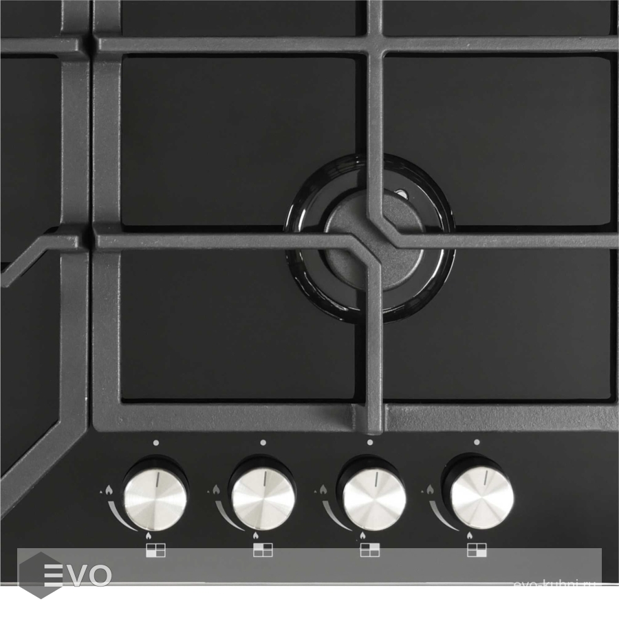 - Цвет поворотных переключателей конфорок: нержавеющая сталь