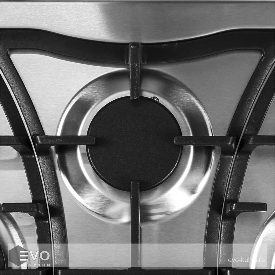 - Цвет поворотных переключателей конфорок: нержавеющая сталь