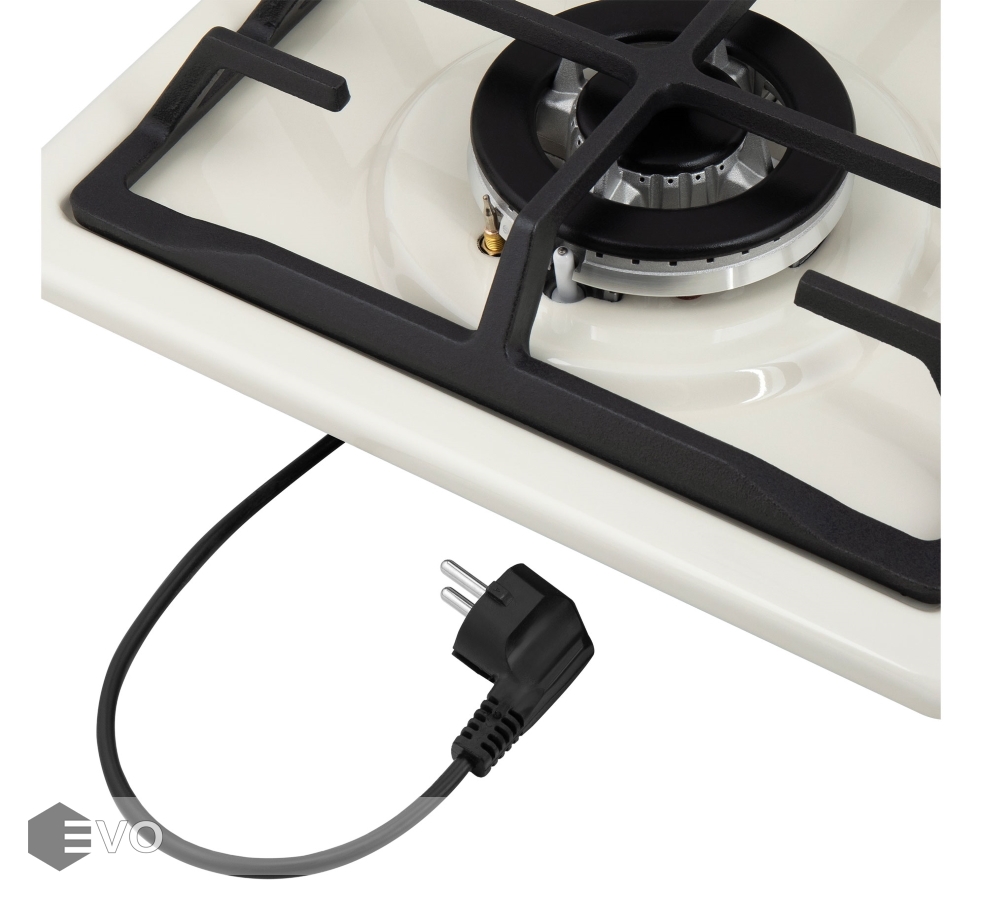 Панель выполнена из нержавеющей стали с эмалевым покрытием. В данной модели установлены высококачественные итальянские горелки «Sabaf». Одна стандартная конфорка мощностью 1700 Вт и одна WOK-конфорка двойным пламенем мощностью 3000 Вт.