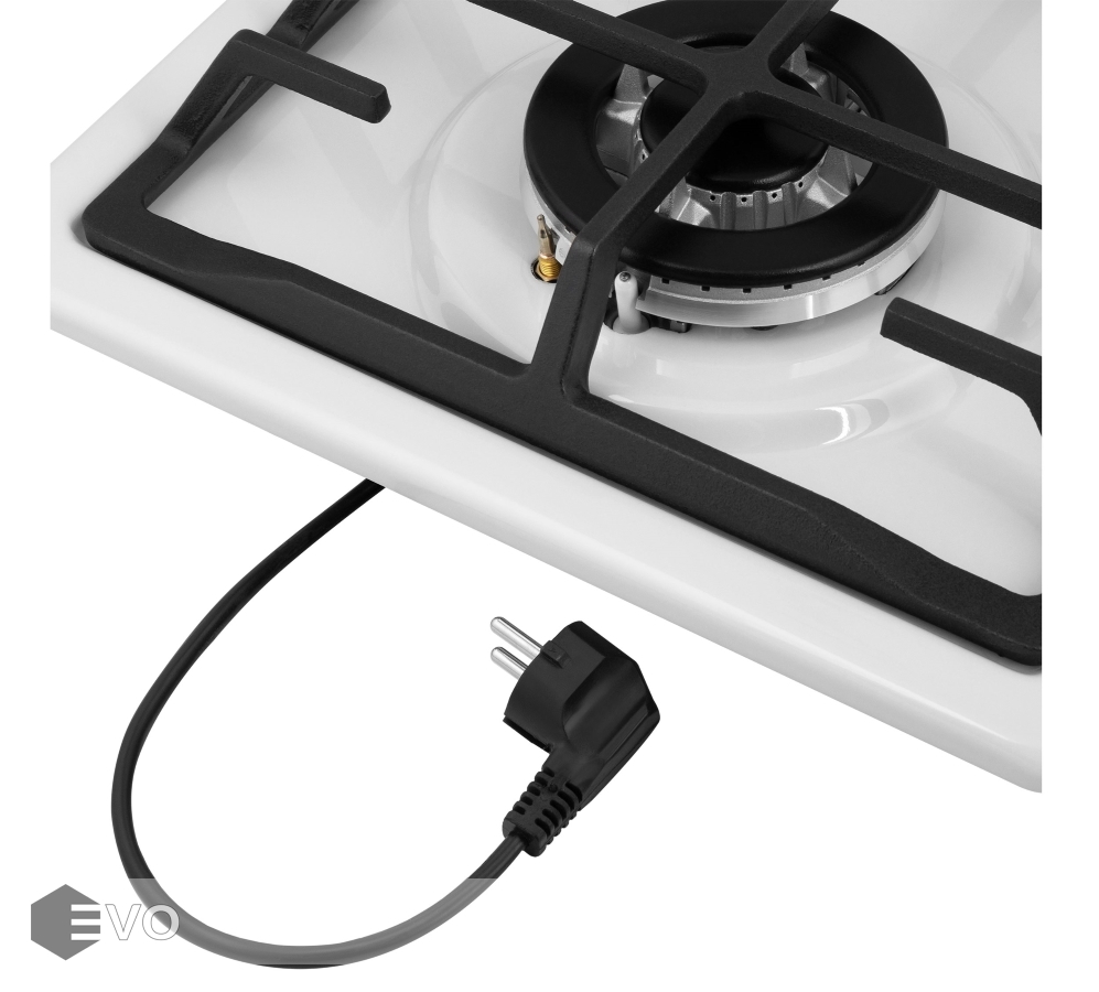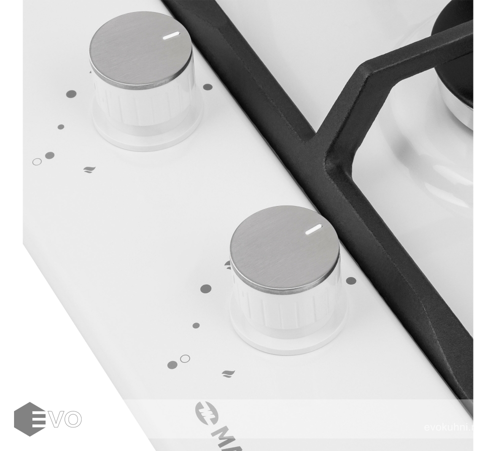 • Цвет поворотных переключателей конфорок: белый