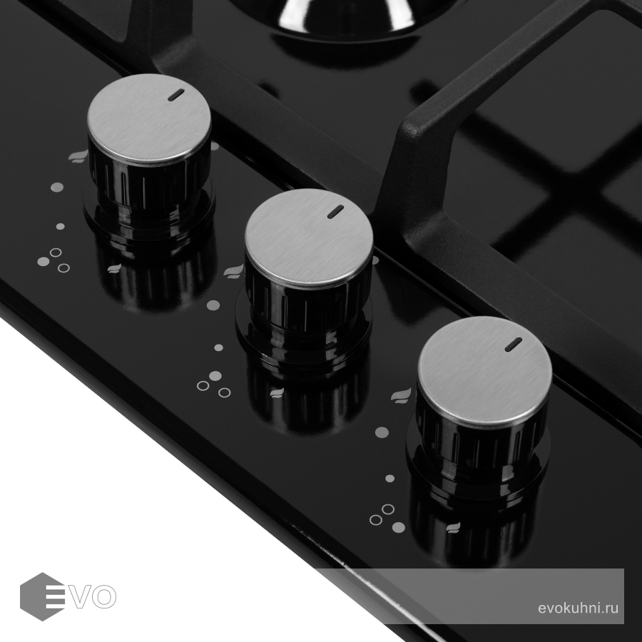 - Цвет поворотных переключателей конфорок: черный