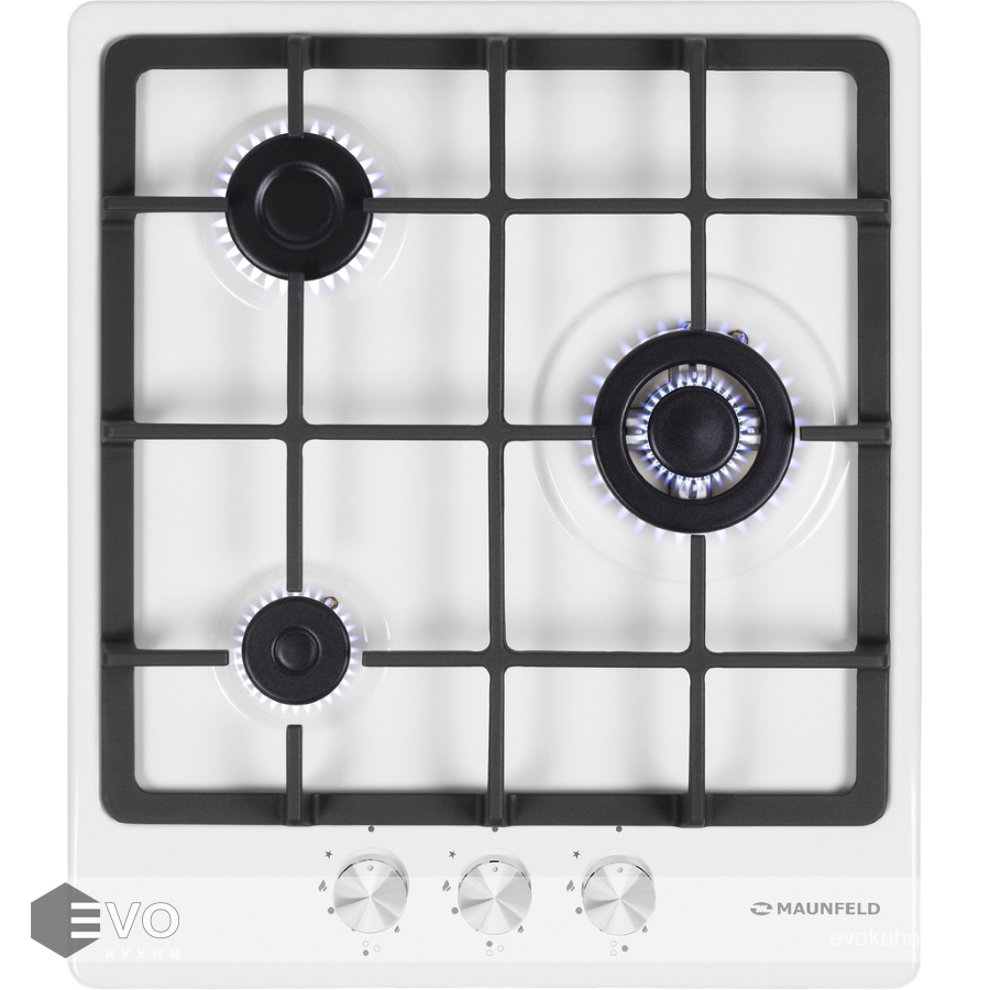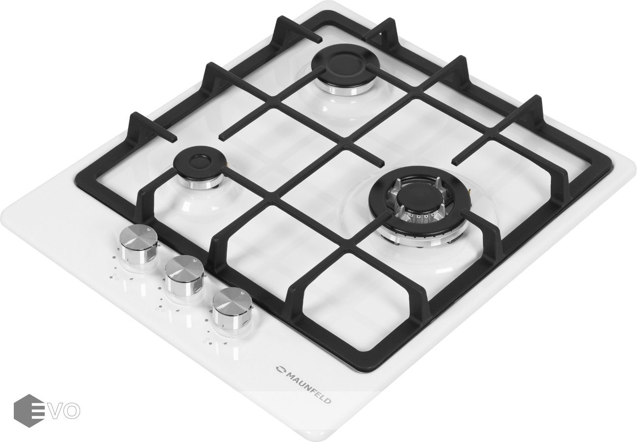Газовая варочная поверхность MAUNFELD EGHE.43.33CW\G – компактная встраиваемая газовая варочная панель шириной 45 см. Работает от магистрального газа и газа в баллоне (тип G30), для этого достаточно поставить специальные жиклеры, которые есть в комплекте.
