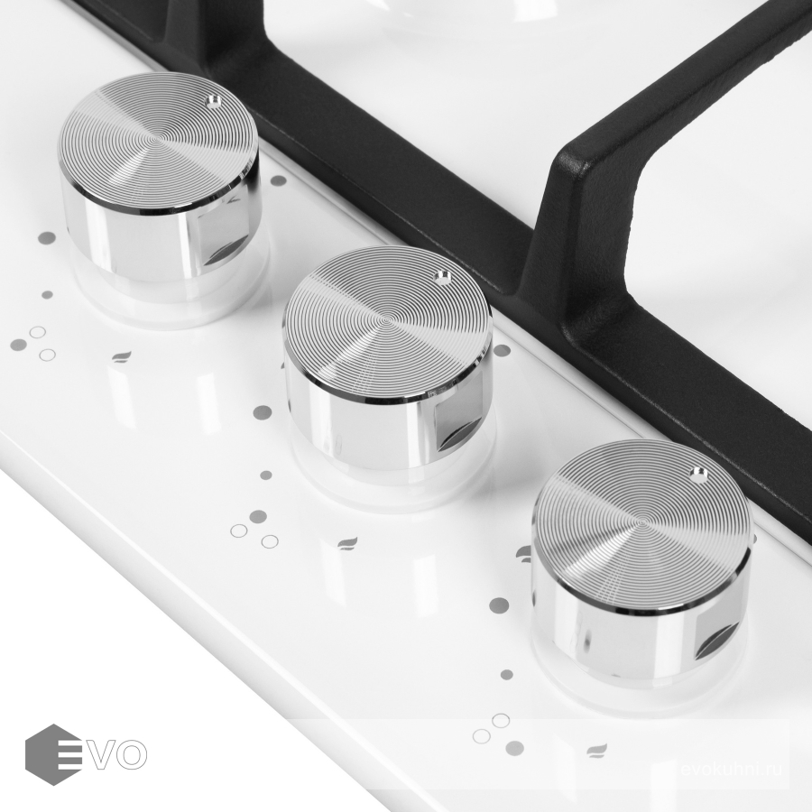 - Цвет поворотных переключателей конфорок: белый