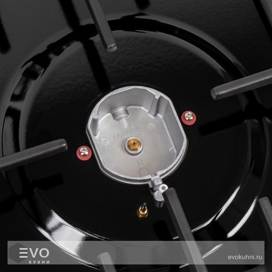 Панель выполнена из металла, покрытого термостойкой прочной эмалью. Четыре  стандартные итальянские конфорки SABAF мощностью 1000 Вт, 1700 Вт, 1700 Вт и 2600 Вт спроектированы таким образом, что огонь не перегревает ни чугунные решетки, ни ручки управления.