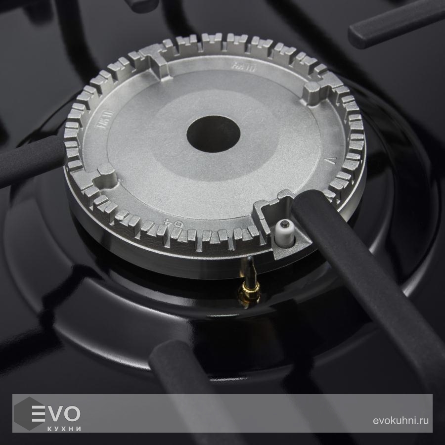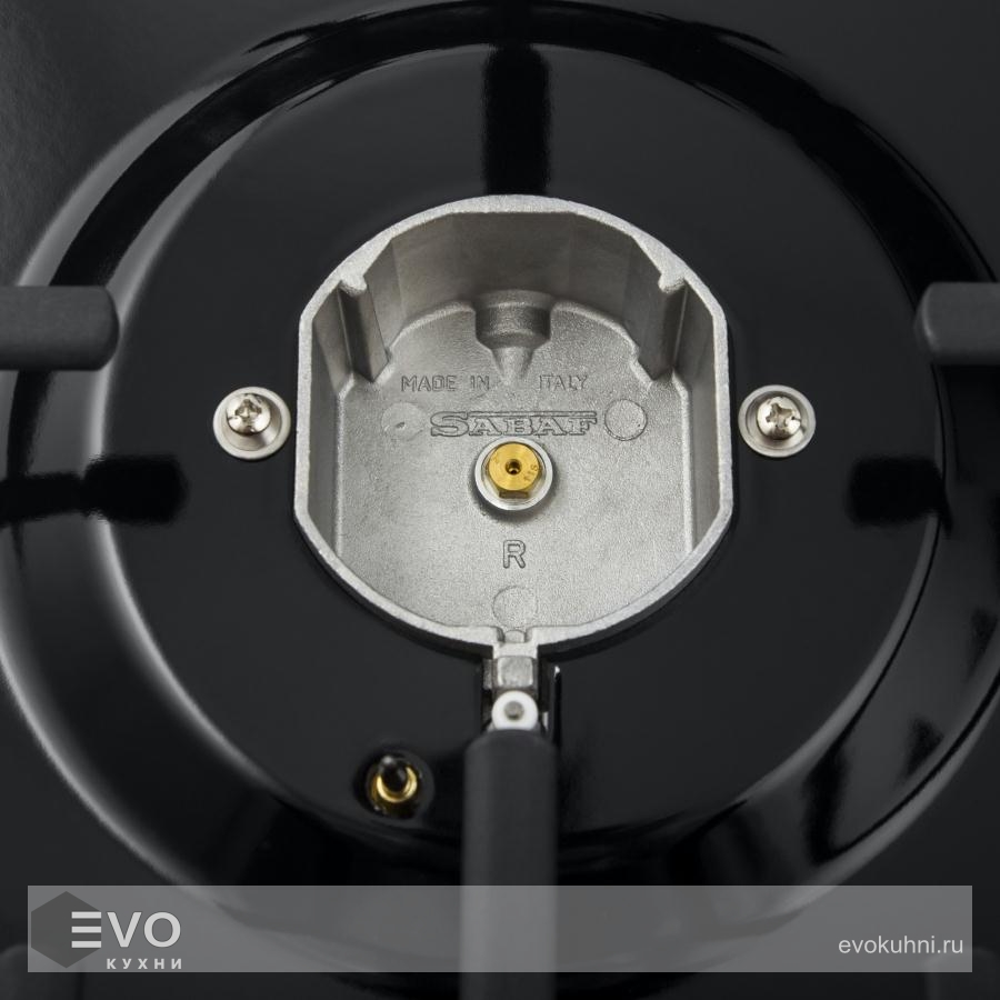 Панель выполнена из металла, покрытого термостойкой прочной эмалью. Четыре стандартные итальянские конфорки SABAF мощностью 1000 Вт, 1700 Вт, 1700 Вт и 2600 Вт спроектированы таким образом, что огонь не перегревает ни чугунные решетки, ни ручки управления.