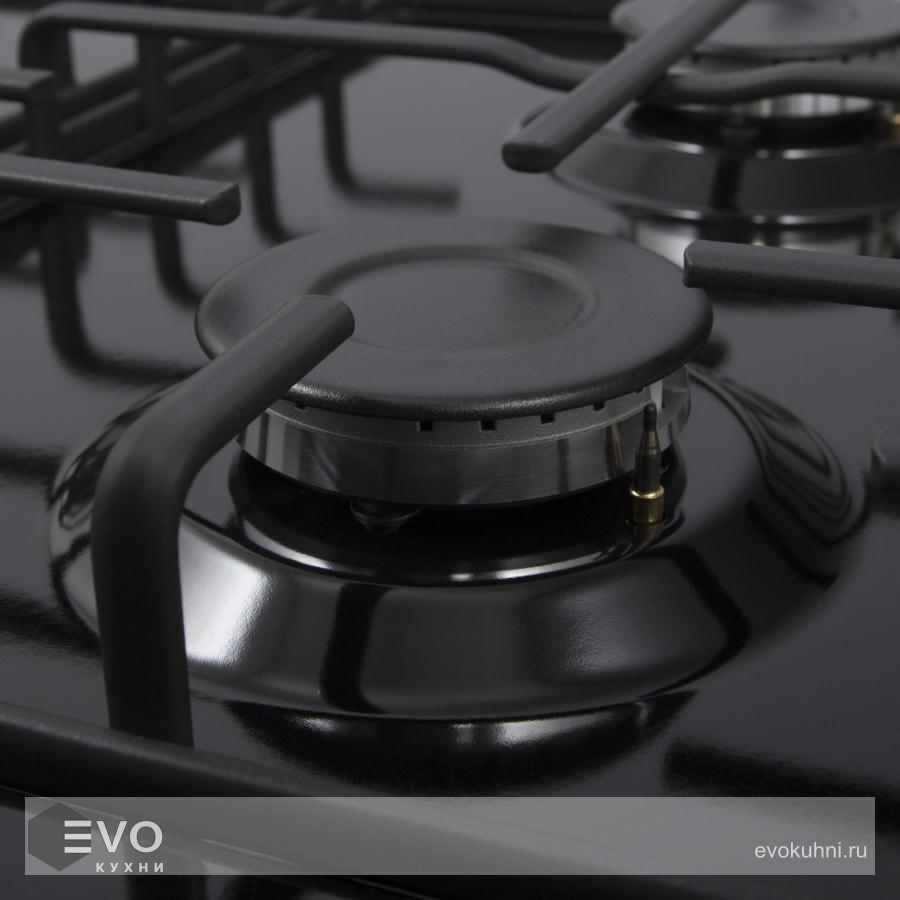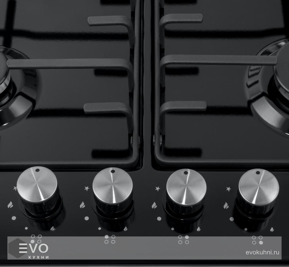 - Цвет поворотных переключателей конфорок: серебристо-черный