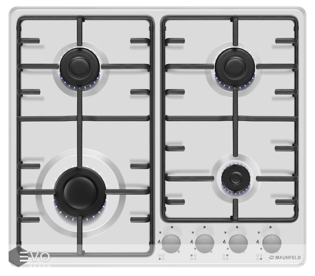 Газовая варочная поверхность MAUNFELD EGHE.64.3STS-EW – компактная встраиваемая газовая варочная панель шириной 60 см. Работает от магистрального газа и газа в баллоне (тип G30), для этого достаточно поставить специальные жиклеры, которые есть в комплекте.