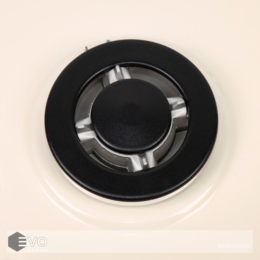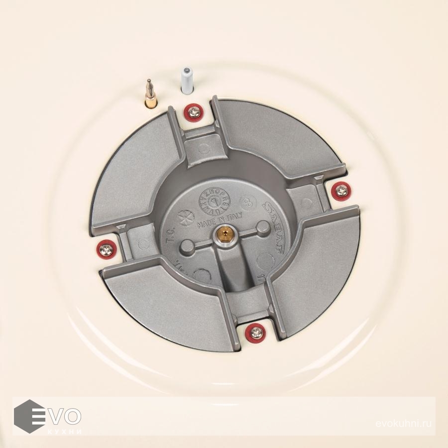 Панель в ретро-стиле выполнена из нержавеющей стали, покрытой термостойкой эмалью. В данной модели установлены итальянские горелки «Sabaf».  Четыре стандартные конфорки  разного диаметра мощностью 1000 Вт, 1700 Вт, 1700 Вт, 2600 Вт и 1 сверхмощная WOK-конфорка с двойным пламенем мощностью 3800 Вт, расположенная на центральной части панели.