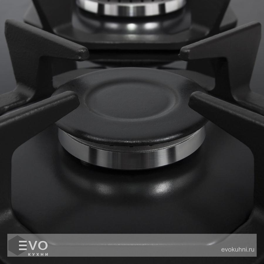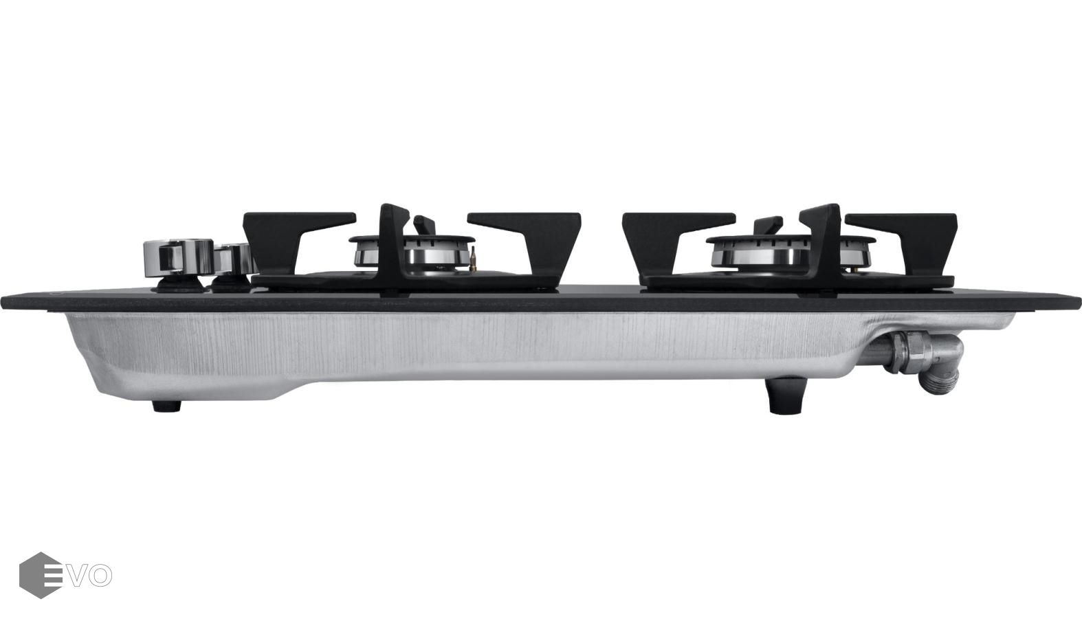 Панель выполнена из термостойкого стекла толщиной 8 мм и с фацетом по всему периметру. В данной модели установлены высококачественные итальянские горелки SABAF. Две конфорки разного диаметра с мощностью 1700 Вт и 2600 Вт, укомплектованы восьмиугольными чугунными решетками. Регулирование подачи газа и электоподжиг конфорок происходит с помощью поворотных цельнометаллических регуляторов. Для простоты использования около каждой ручки нанесены информационные изображения: используемая конфорка, подача газа выключена, электроподжиг, максимальное пламя и минимальное пламя.