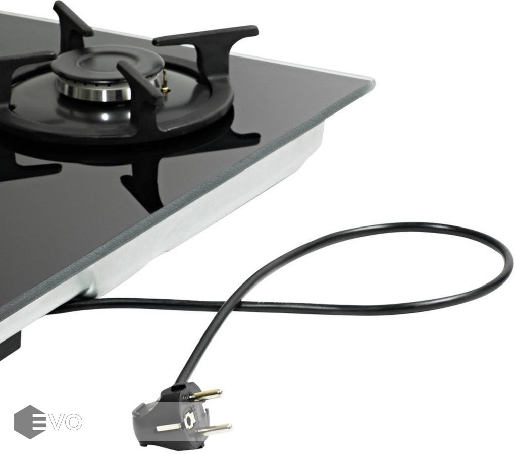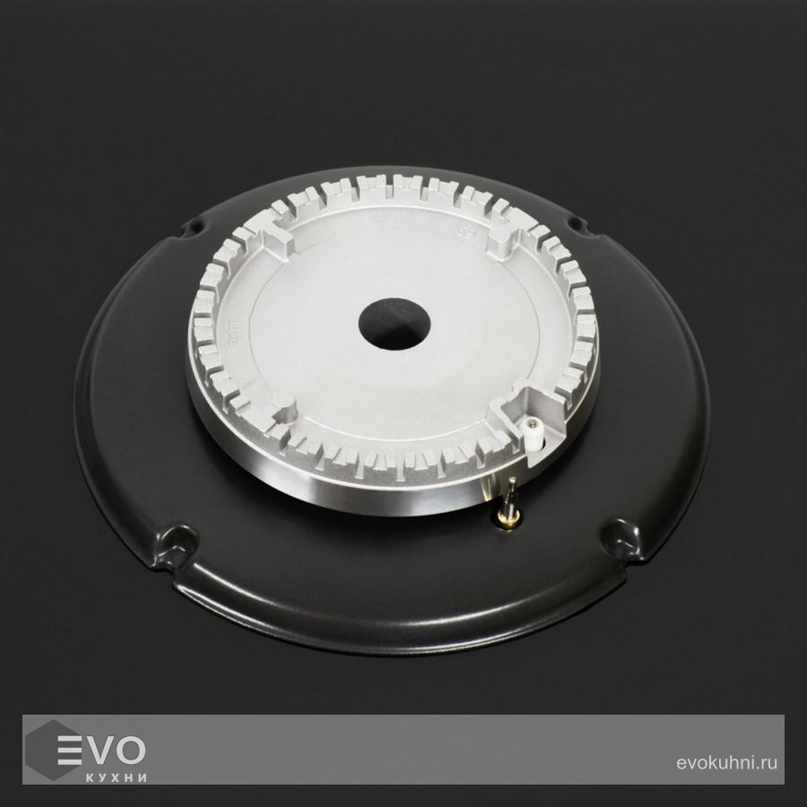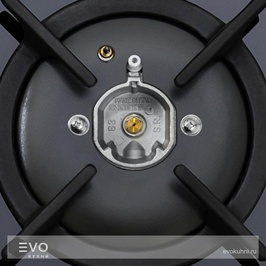 Панель выполнена из термостойкого стекла толщиной 8 мм. В данной модели установлены высококачественные итальянские горелки SABAF. Четыре стандартные конфорки мощностью 1000 Вт, 1700 Вт, 1700 Вт и 2600 Вт и укомплектованы круглыми чугунными решетками.