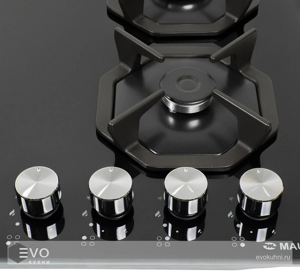 - Цвет поворотных переключателей конфорок: серебристый