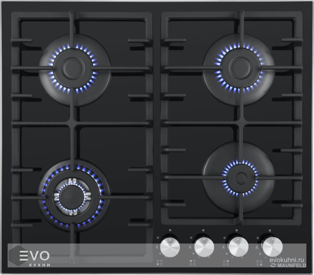 Газовая варочная поверхность MAUNFELD EGHG.64.33CB/G – встраиваемая газовая варочная панель шириной 60 см работает от магистрального газа и газа в баллоне, для этого достаточно поставить специальные жиклеры.