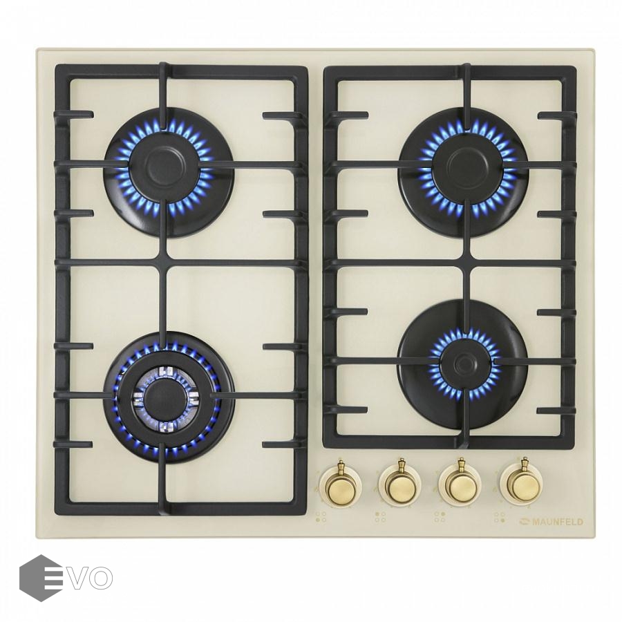 Газовая варочная поверхность MAUNFELD EGHG.64.33CBG.R/G – встраиваемая газовая варочная панель шириной 60 см работает от магистрального газа и газа в баллоне, для этого достаточно поставить специальные жиклеры.