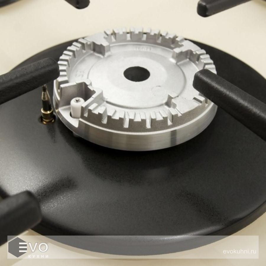 Панель выполнена из закаленного стекла, отличающегося высокой прочностью и термостойкостью. В данной модели установлены высококачественные итальянские горелки SABAF. Три стандартные конфорки мощностью 1000 Вт, 1700 Вт, 1700 Вт и 1 сверхмощная WOK-конфорка с двойным пламенем мощностью 3000 Вт.