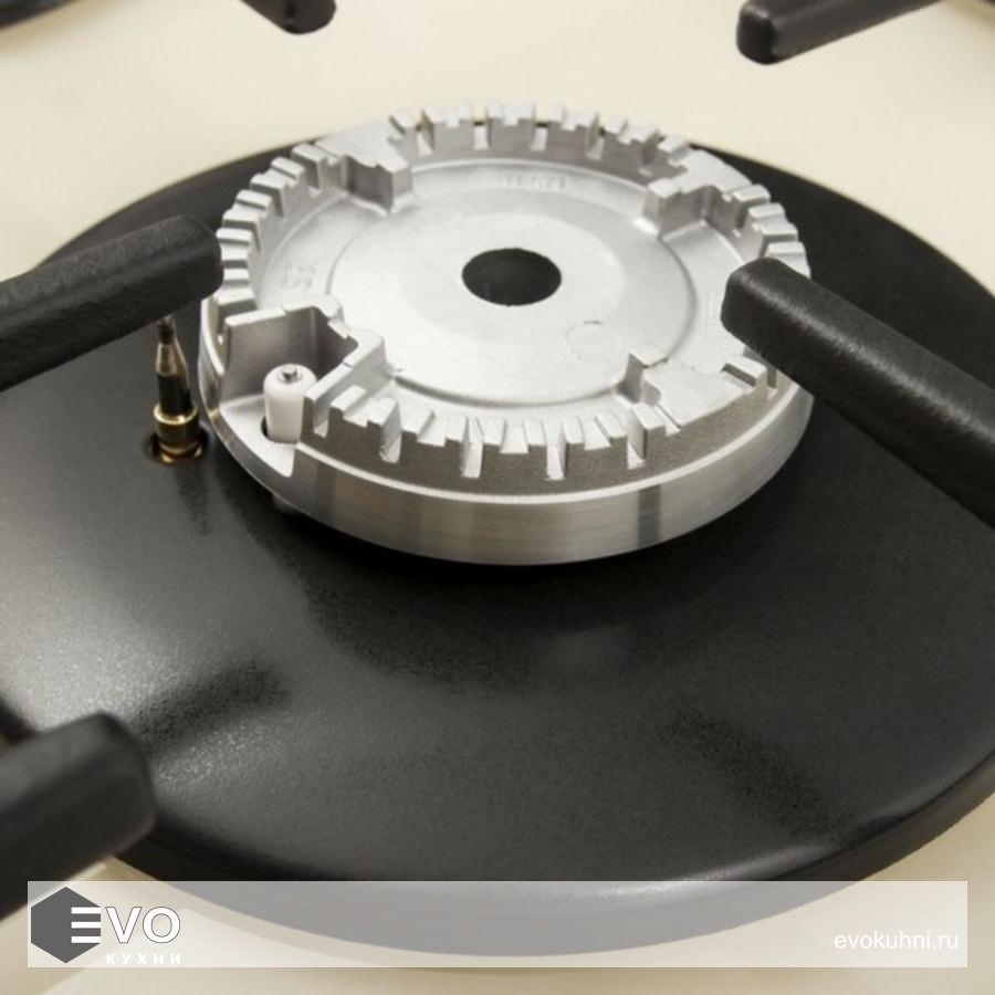 Панель выполнена из закаленного стекла, отличающегося высокой прочностью и термостойкостью. В данной модели установлены высококачественные итальянские горелки SABAF. Три стандартные конфорки мощностью 1000 Вт, 1700 Вт, 1700 Вт и 1 сверхмощная WOK-конфорка с двойным пламенем мощностью 3000 Вт.