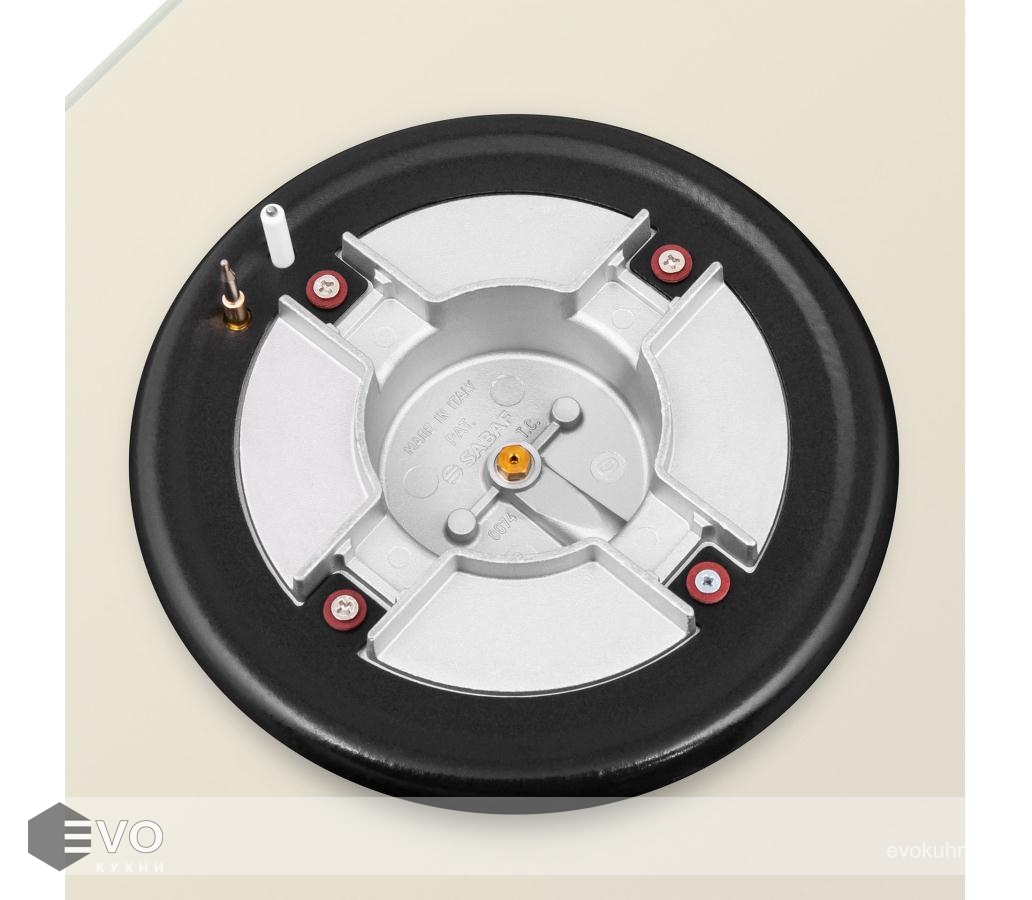Панель выполнена из закаленного стекла толщиной 8 мм, устойчивого к царапинам, сколам и постоянным перепадам температур. В данной модели установлены высококачественные итальянские горелки SABAF. Три стандартные конфорки мощностью 1000 Вт, 1700 Вт, 1700 Вт и одна сверхмощная WOK-конфорка (3800 Вт) с двойным пламенем, спроектированные таким образом, что огонь не перегревает ни чугунные решетки, ни ручки управления.