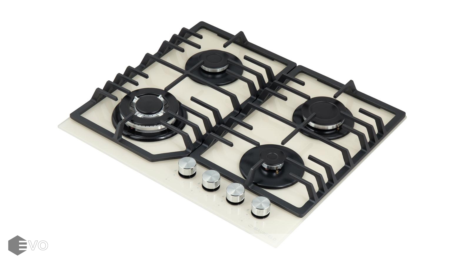 Панель выполнена из закаленного стекла толщиной 8 мм, устойчивого к царапинам, сколам и постоянным перепадам температур. В данной модели установлены высококачественные итальянские горелки SABAF. Три стандартные конфорки мощностью 1000 Вт, 1700 Вт, 1700 Вт и одна сверхмощная WOK-конфорка (3800 Вт) с двойным пламенем, спроектированные таким образом, что огонь не перегревает ни чугунные решетки, ни ручки управления.