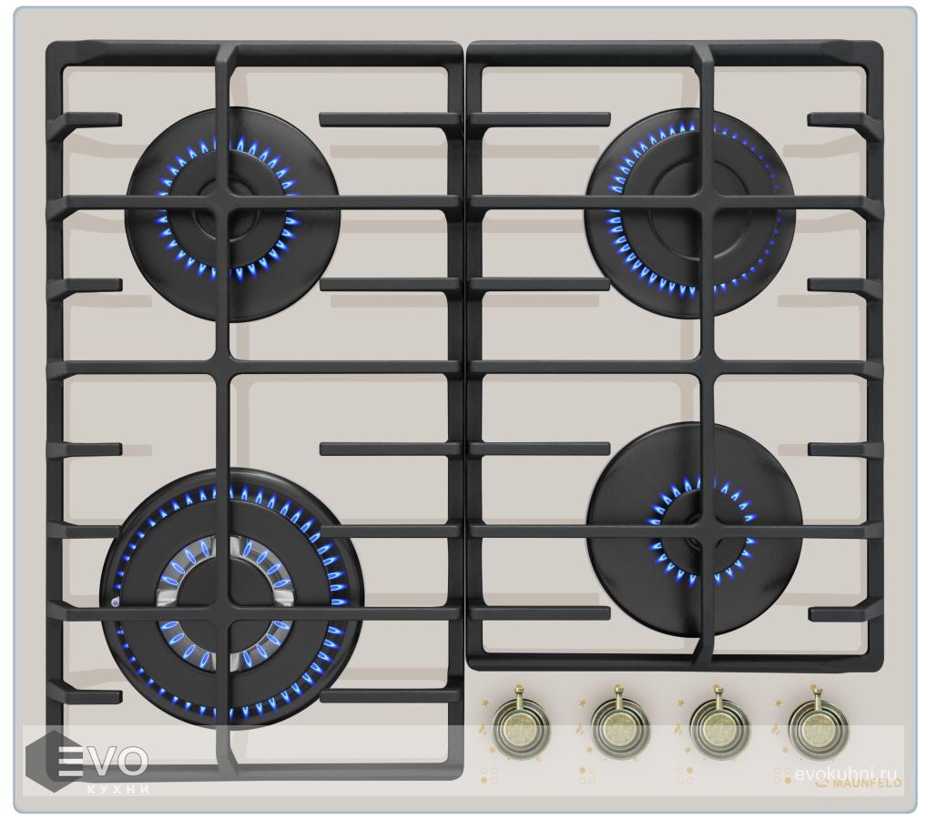 Газовая варочная поверхность MAUNFELD EGHG.64.63CBG.R/G – встраиваемая газовая варочная панель в ретро-стиле, шириной 60 см работает от магистрального газа и газа в баллоне, для этого достаточно поставить специальные жиклеры.