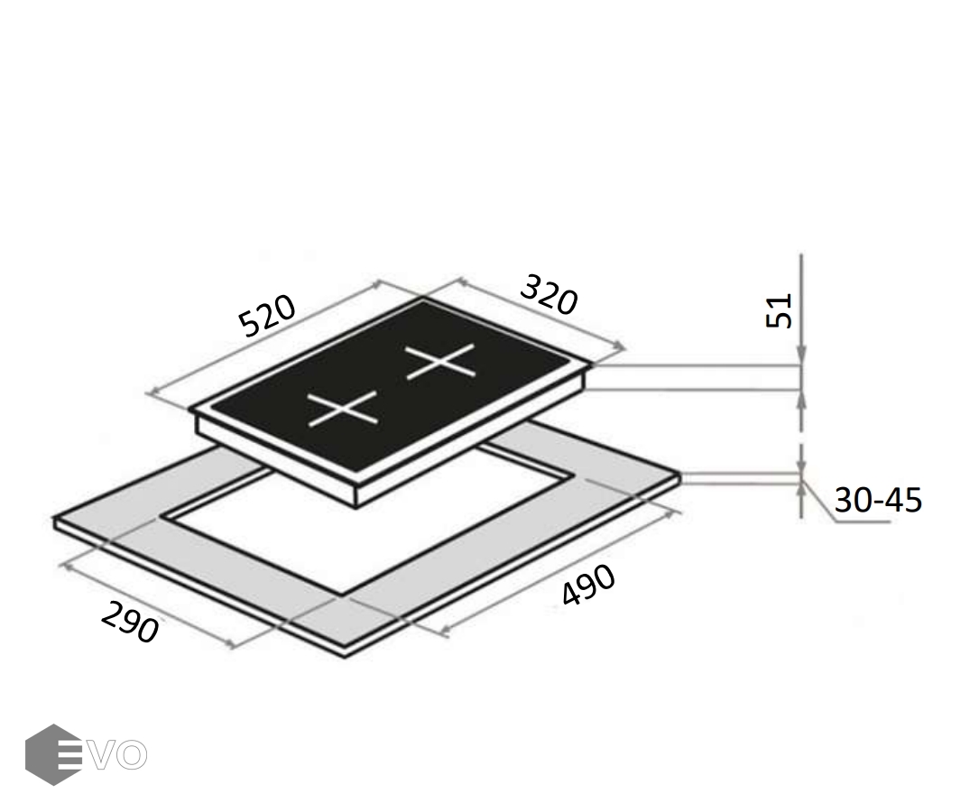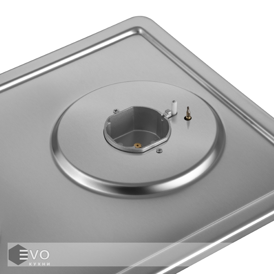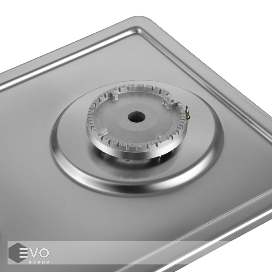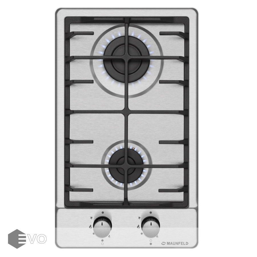 Панель выполнена из нержавеющей стали. В данной модели установлены высококачественные итальянские горелки «Sabaf». Две конфорки разного диаметра с мощностью 1700 Вт и 2600 Вт. Чугунная решетка имеет крестообразные соединения над конфорками, что позволяет готовить в посуде разного диаметра, не используя специальные подставки.