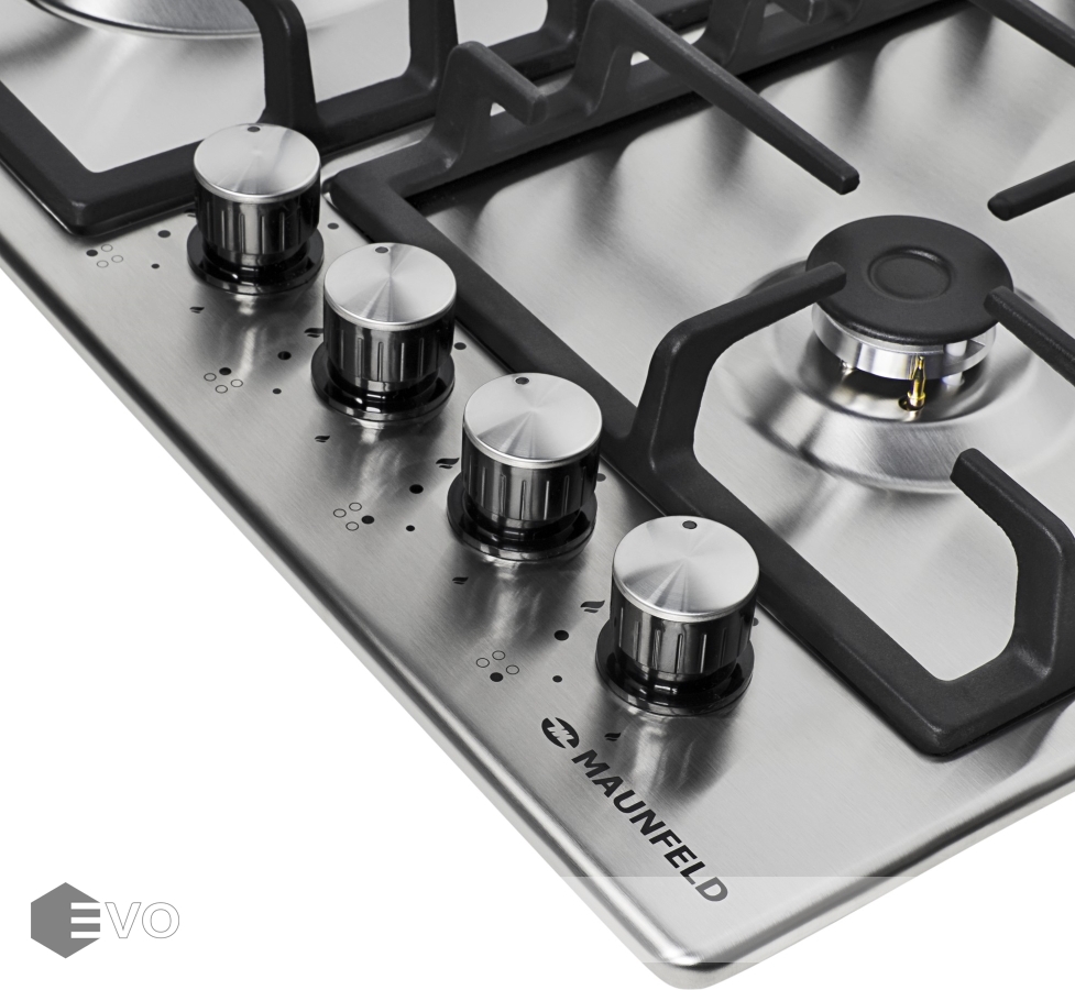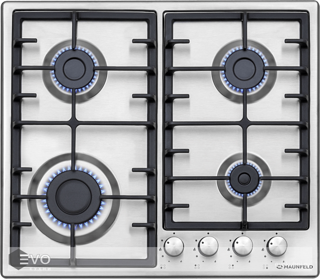 Газовая варочная поверхность MAUNFELD EGHS.64.3CS/G – встраиваемая газовая варочная панель шириной 60 см может работать от магистрального газа и газа в баллоне (тип G30), для этого достаточно поставить специальные жиклеры, находящиеся в комплекте.