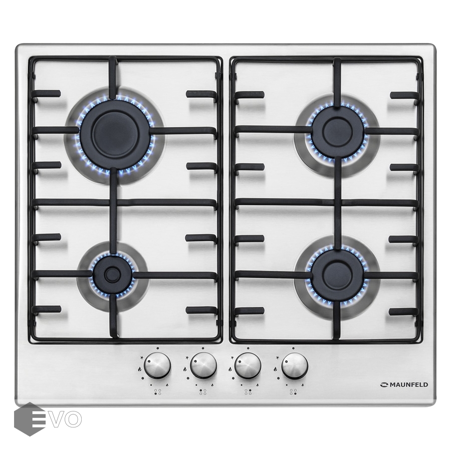Газовая варочная поверхность MAUNFELD EGHS.64.3ES/G – встраиваемая газовая варочная панель шириной 60 см может работать от магистрального газа и газа в баллоне (тип G30), для этого достаточно поставить специальные жиклеры, находящиеся в комплекте.