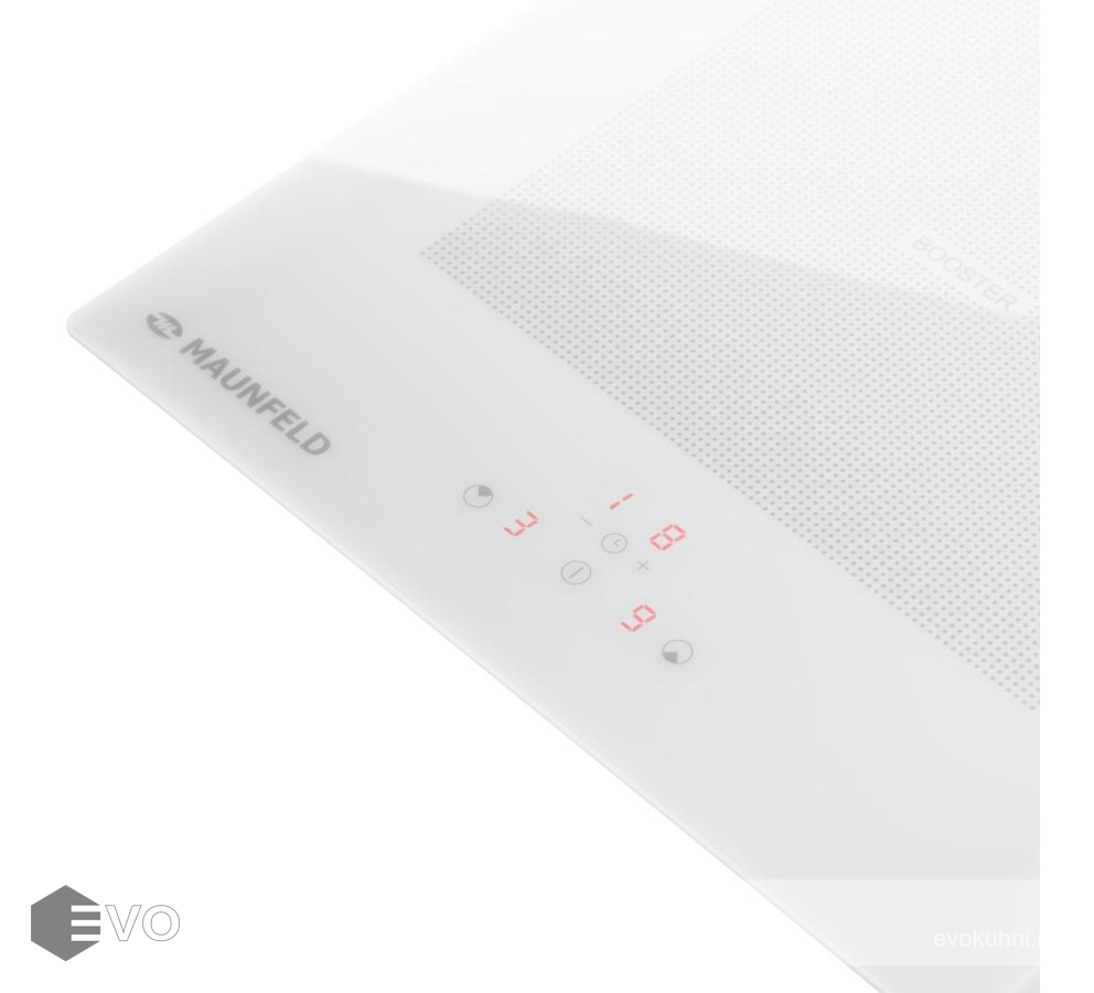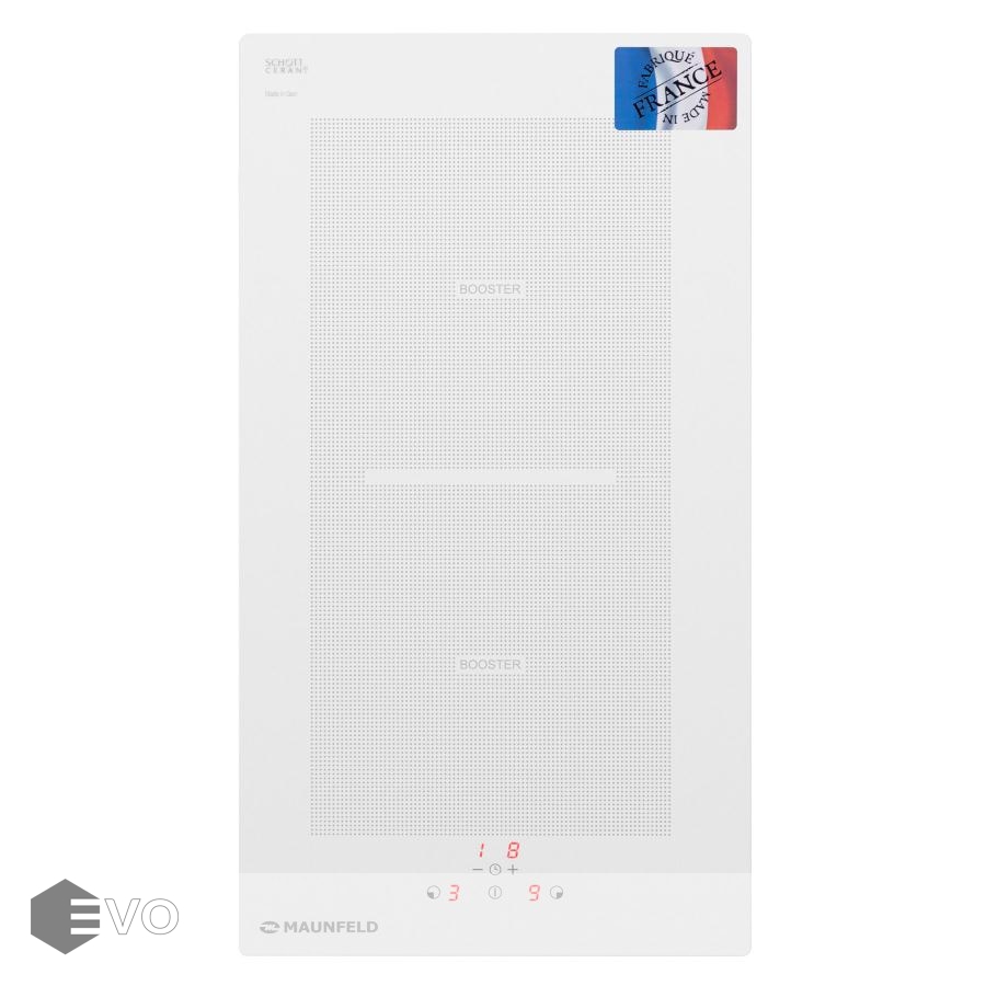 Индукционная варочная панель MAUNFELD MVI31.FL2-WH – варочная панель шириной 31 см выполнена из жаропрочного износостойкого стекла, диаметр каждой из 2-х конфорок составляет 160 мм. с мощностью 1400 Вт( бустер 2000 Вт). Сенсорное управление, расположенное на фронтальной поверхности, дает возможность: выбрать уровень мощности для каждой конфорки (9 уровней), заблокировать панель от детей, выставить таймер (для отключения одной или нескольких варочных зон по истечении заданного времени).